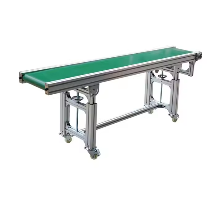 The Height Adjustable Cheap Conveyor Belt with a green PVC belt is an affordable and versatile material handling solution designed to meet the needs of various industries. Ideal for light to medium-duty applications, this conveyor system is both functional and cost-effective, offering adjustable height options to suit your workspace requirements.
