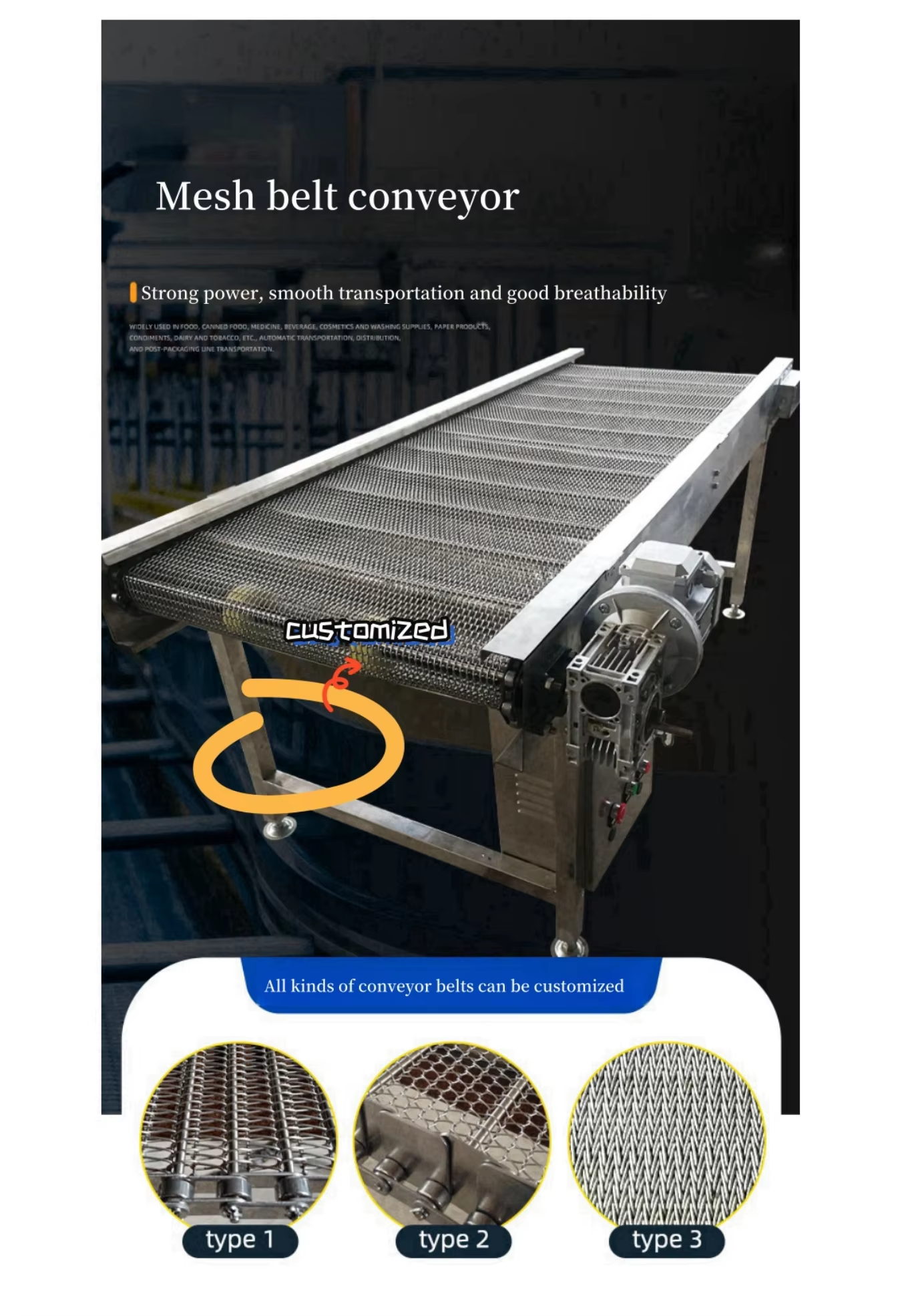 The Horizontal Wire Mesh Belt Conveyor is a highly durable and versatile conveyor system designed to transport products across horizontal surfaces in various industrial applications. Constructed with high-quality wire mesh belts, this conveyor provides smooth, efficient, and reliable material handling, ensuring optimal performance in demanding environments.